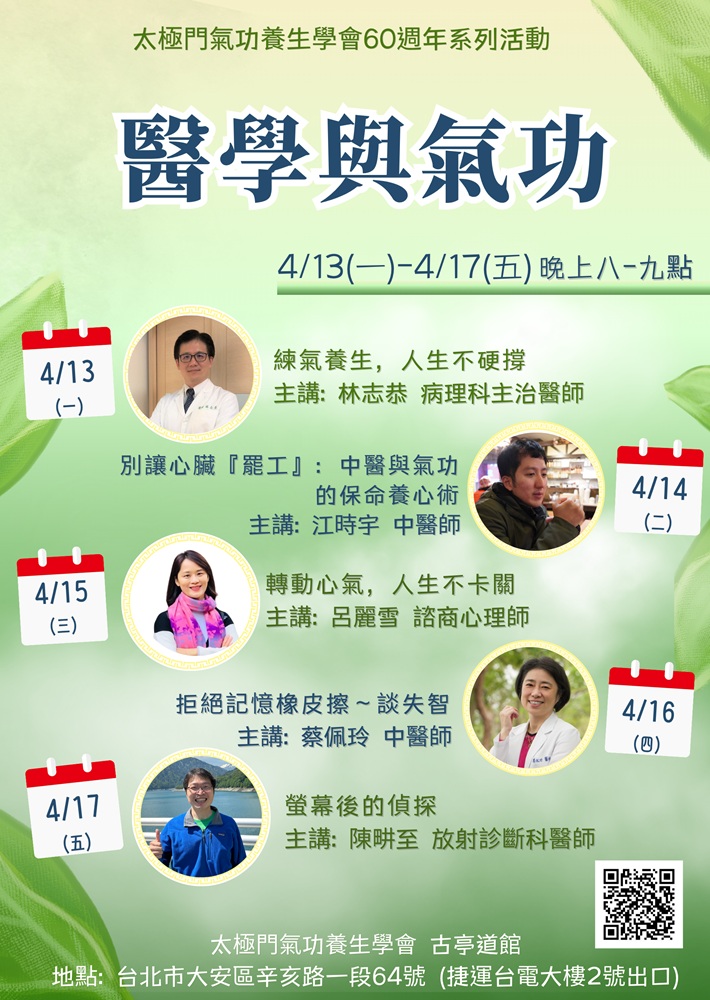 2026-04-26 14:30~15:10 古亭道館 (主講人:江時宇中醫師)