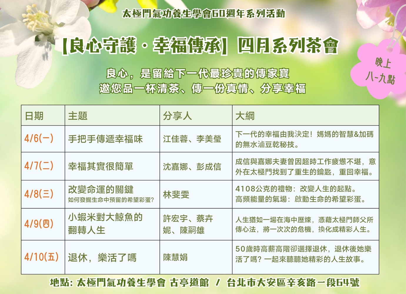 2026-04-08 20:00~21:00 古亭道館 (主講人:林斐雯)