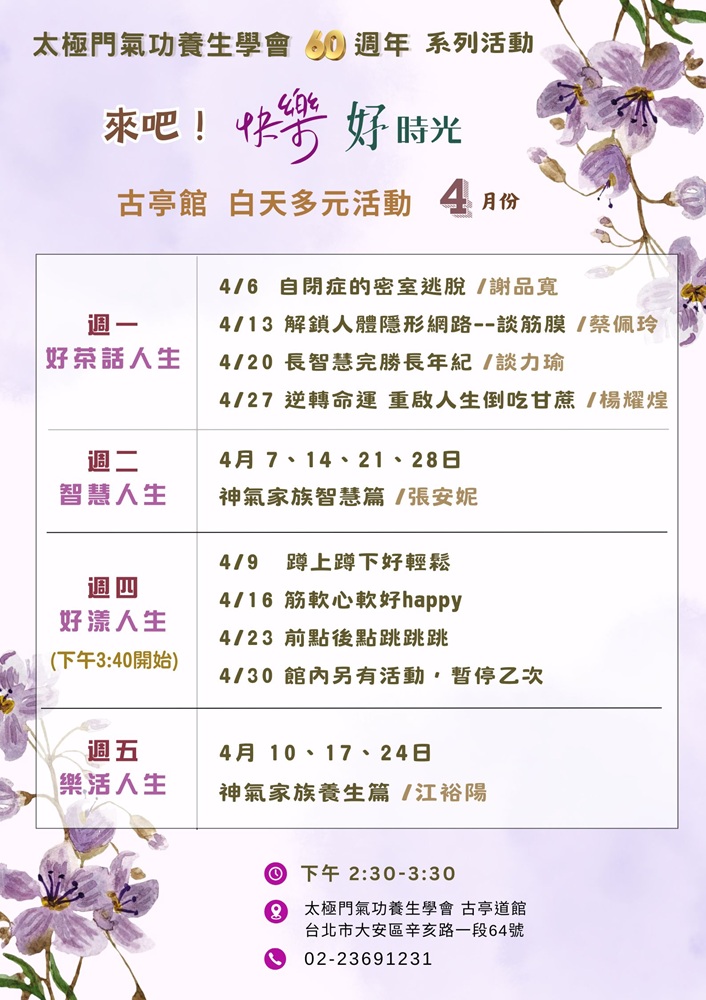 2026-04-19 14:30~15:10 古亭道館 (主講人:陳麗雪 退休老師)