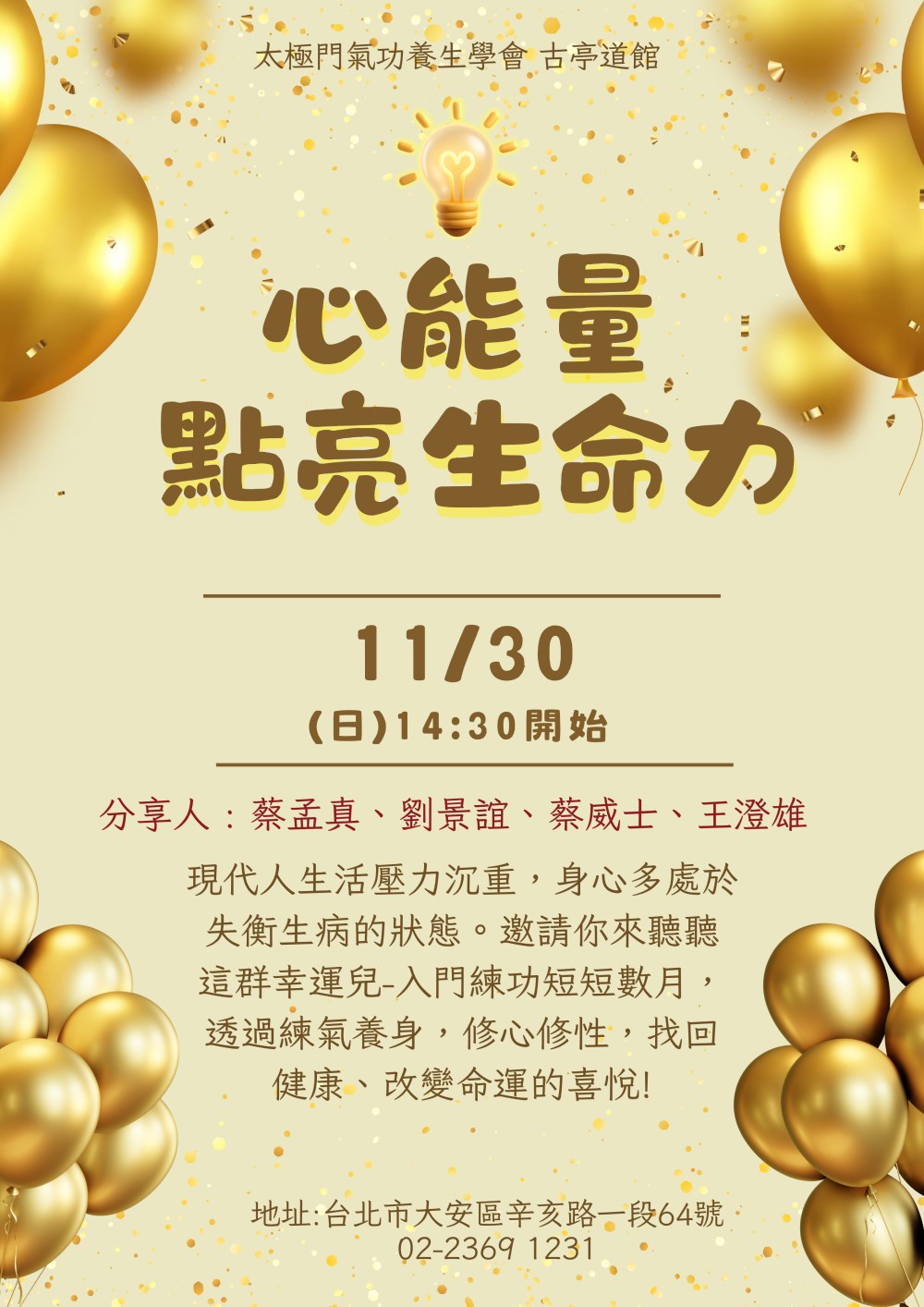 2025-11-15 14:30~ 古亭道館 (主講人:游金女)
