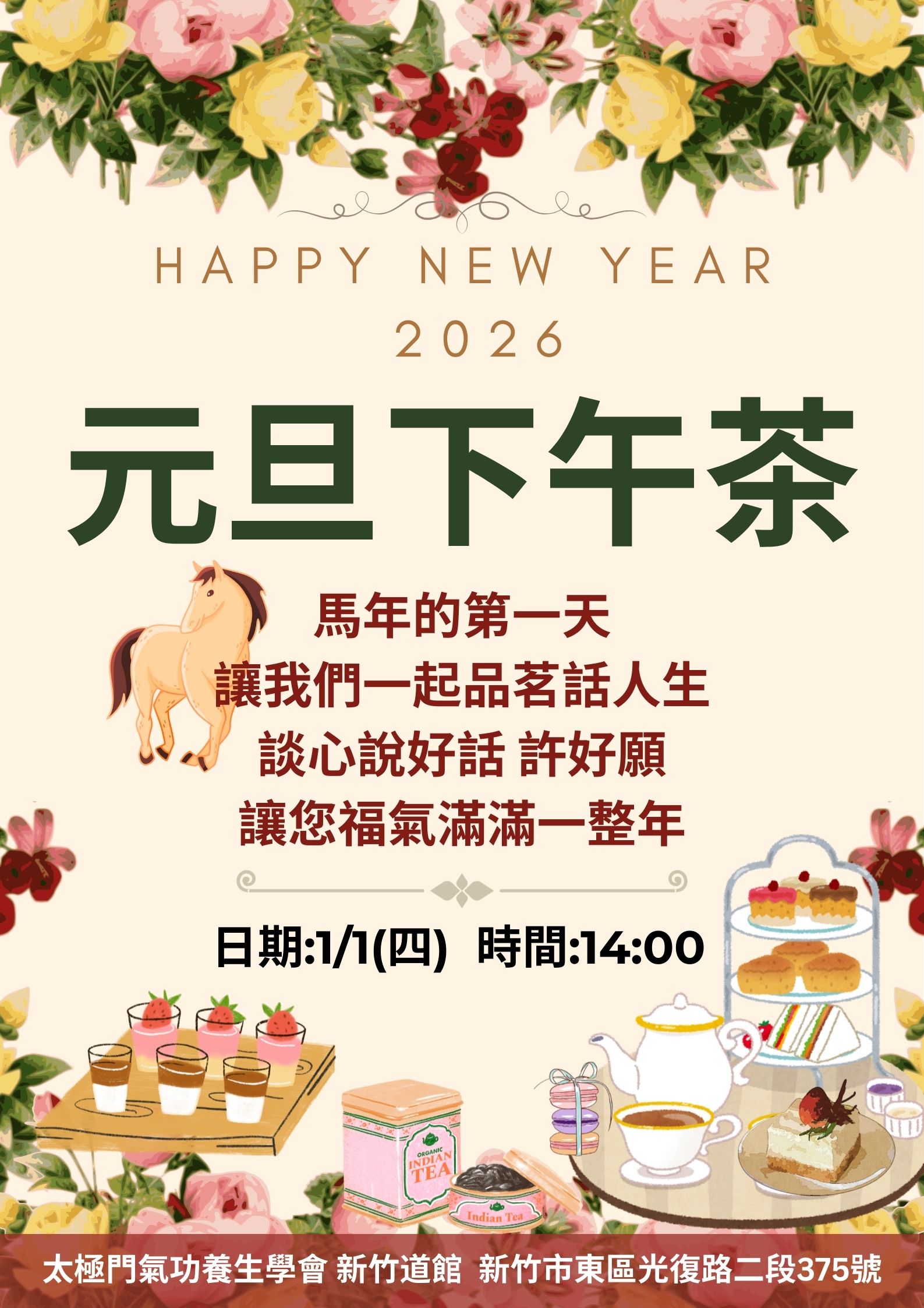 2026-01-01 14:00~ 新竹道館 馬年的第一天讓我們一起品茗話人生,談心說好話、許好願,讓您福氣滿滿一整年!