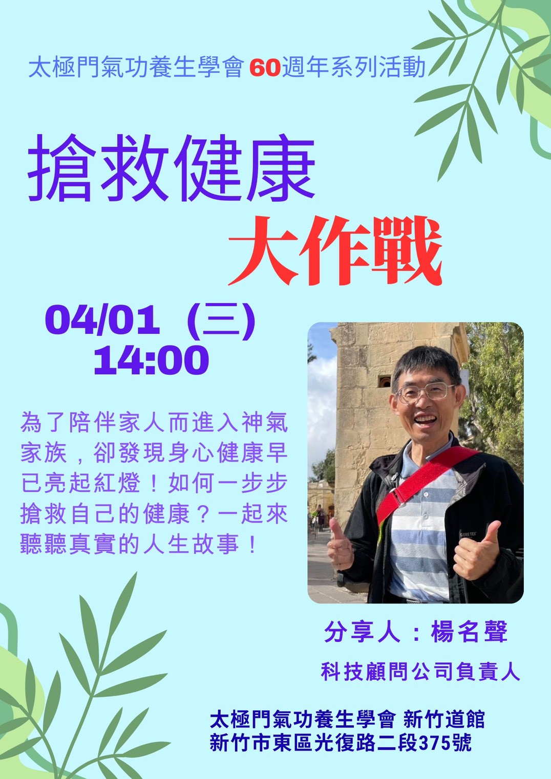 2026-04-08 14:00~ 新竹道館 (主講人:陳榮昌、徐上閔、謝素嬉、葉大偉)
