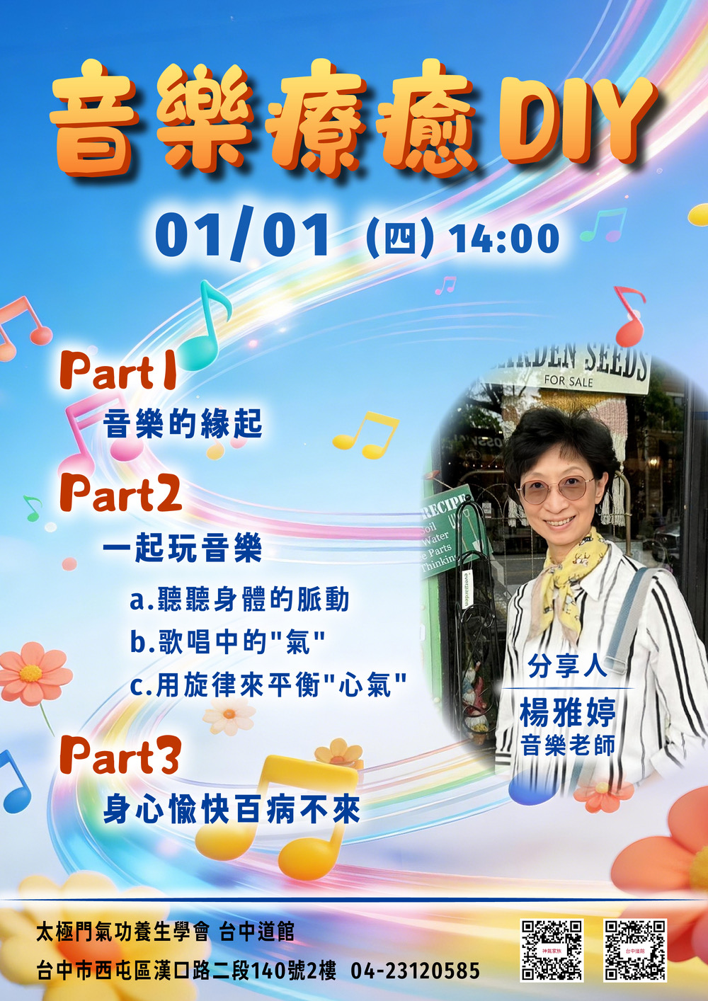 2026-01-01 14:00~ 台中道館 (主講人:楊雅婷/音樂老師)