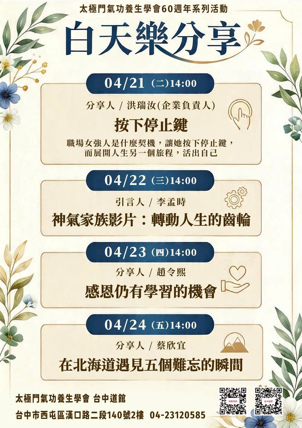 2026-04-24 14:00~ 台中道館 (主講人:蔡欣宜)