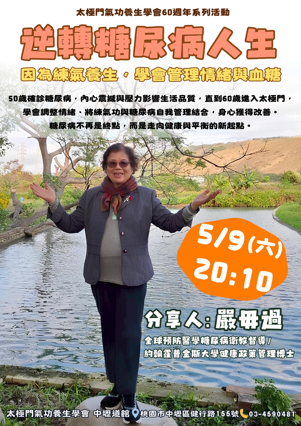 50歲確診糖尿病,內心震撼與壓力影響生活品質,直到60歲進入太極門,學會調整情緒、將練氣功與糖尿病自我管理結合,身心獲得改善。