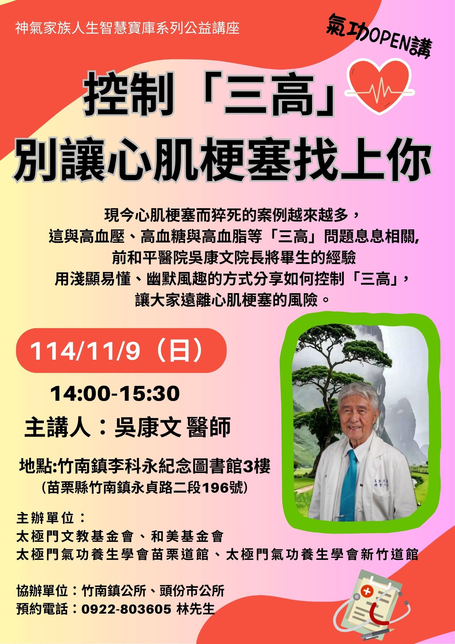 2025-11-09 14:00~15:30 竹南鎮李科永紀念圖書館3樓 (主講人:吳康文 醫師)