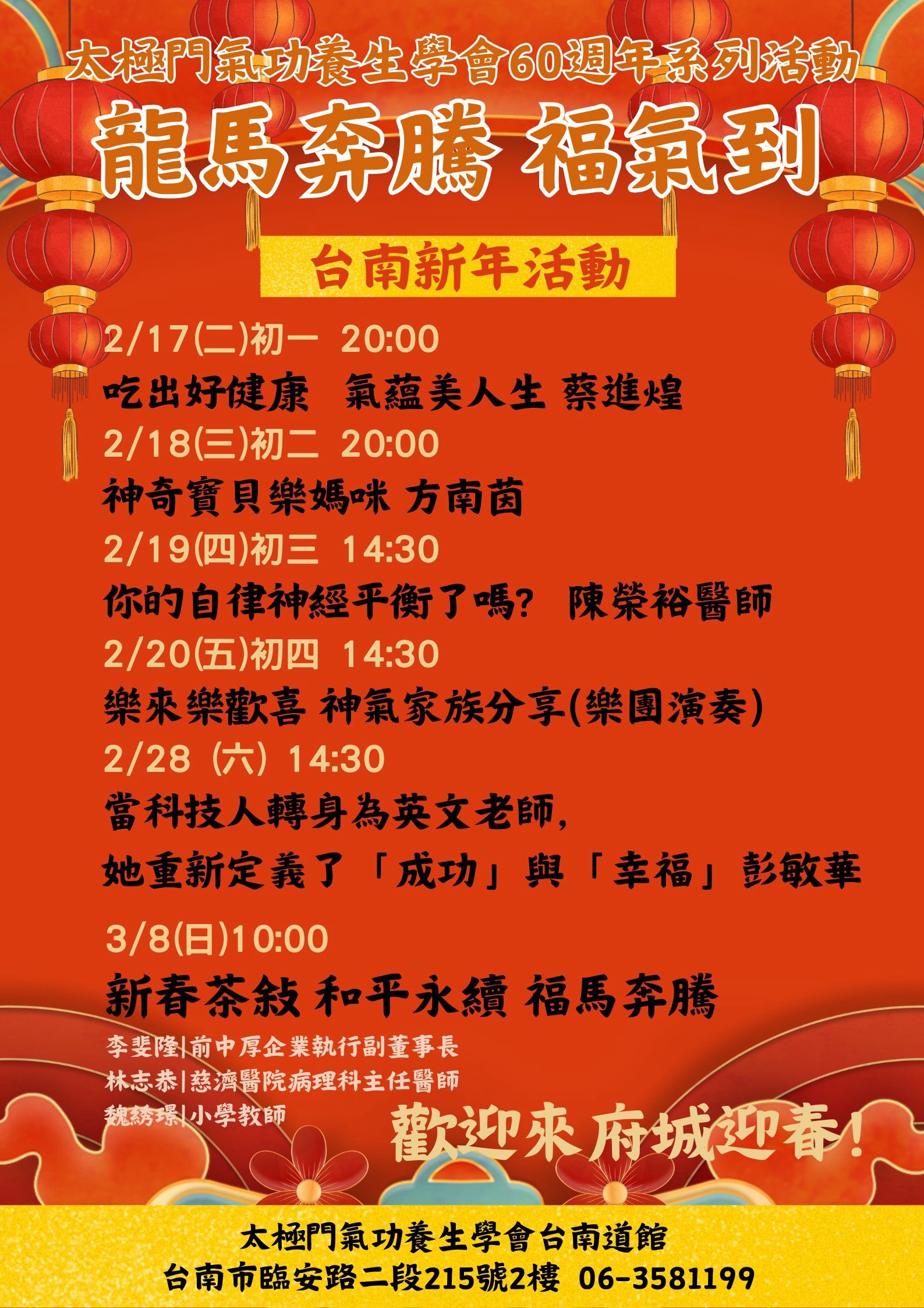 2026-02-28 14:30~16:00 台南道館 (主講人:蔡進煌、方南茵、陳榮裕等人)
