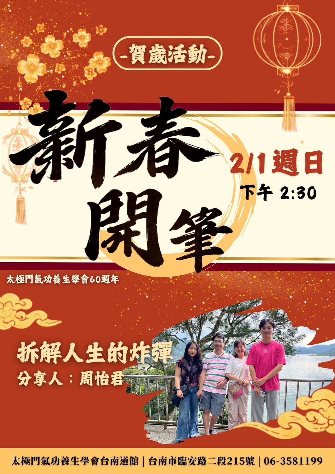 2026-02-01 14:30~16:00 台南道館 (主講人:周怡君)