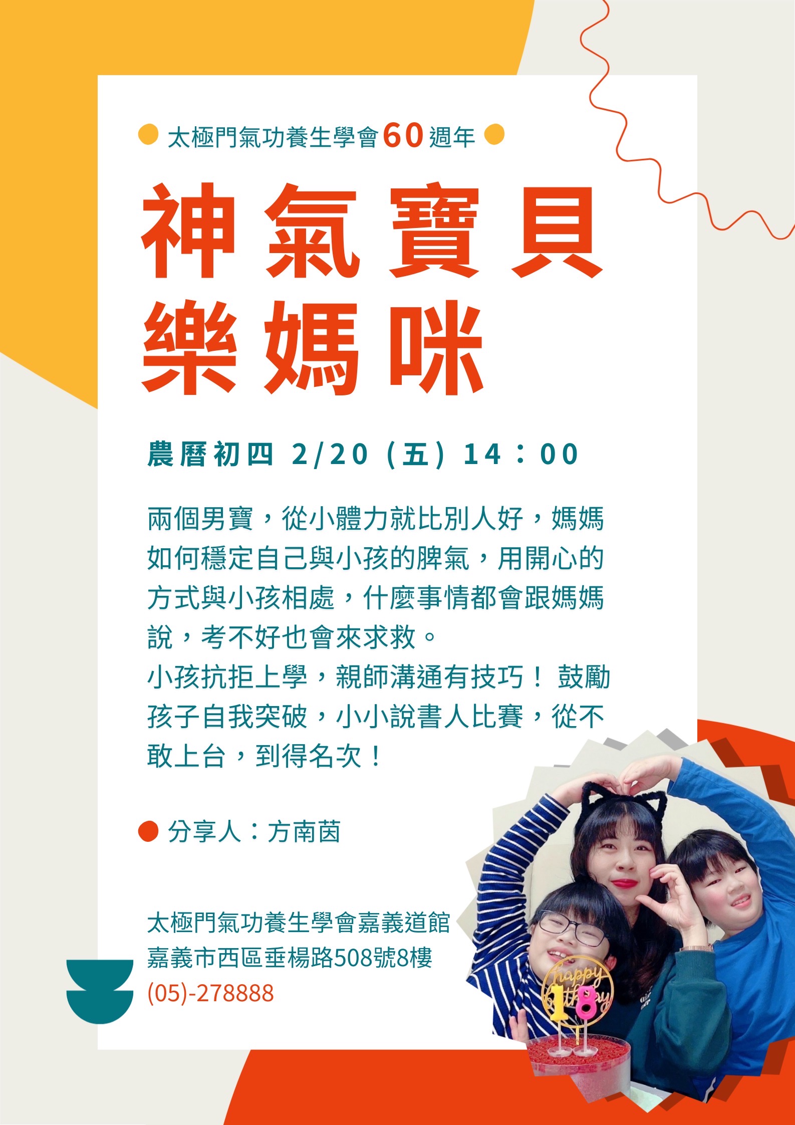 2026-02-20 14:00~16:00 嘉義道館 (主講人:方南茵)