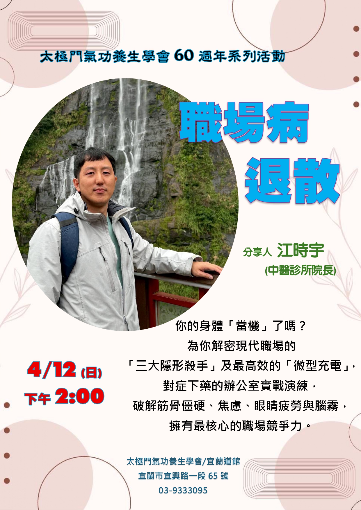 2026-04-12 14:00~15:30 宜蘭道館 (主講人:江時宇(中醫診所院長))