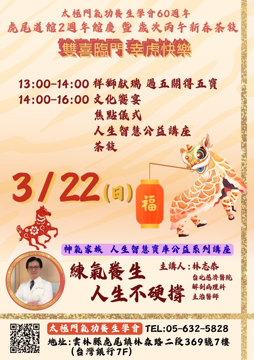 2026-03-22 13:00~16:00 虎尾道館 (主講人:林志恭/台北慈濟醫院 解剖病理科主治醫師)