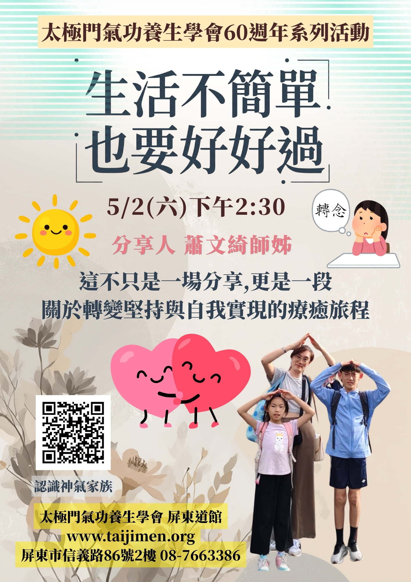 2026-04-11 14:30~15:30    屏東道館  (主講人:蕭文綺)