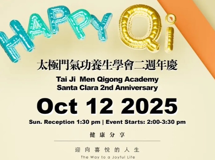 2025-10-12 1:30 pm~3:30 pm 聖塔克拉拉道館 太極門氣功養生學會聖塔克拉拉(Santa Clara)道館將於2025年10月12日(日)下午1:30舉辦二週年館慶,以「Happy Qi Happy Life,迎向喜悅的人生」為主題的精采活...