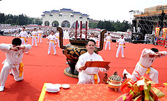 The culture of "praying to heaven" is an important cultural heritage. Last for five or six thousand years, the ceremony of praying to heaven has been one of earliest important ceremonies preserved in Chinese history. In the ancient time, people prayed to heaven for the country's prosperity, people in peace and good harvest due to favorable weather. Thousands years later in modern times, Tai Ji Men, a qigong, martial arts and cultivation group, will, for the first time, hold the "2008 Tai Ji Men Ceremony for Praying to Heaven for Blessing for All" at the National Chiang Kai-Shek Cultural Center at 2 p.m. on April 18, 2008 (Friday). Presenting the legacy of culture and wisdom by generations, the ceremony is to lead the world to appreciate the Heaven and Earth, reflect on oneself, and pray together for world peace.