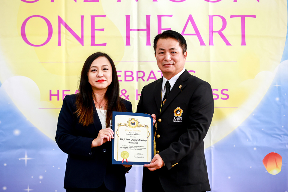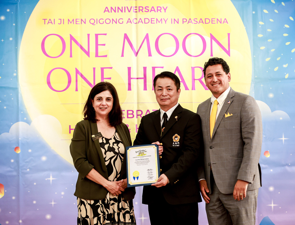On October 5, on the eve of the Moon Festival, Tai Ji Men Qigong Academy in Pasadena holds a special celebration for its second anniversary, with community leaders and many local residents joining the joyful occasion.Tai Ji Men is an ancient menpai (school) of qigong, martial arts, and self-cultivation that inherits the essence of the Taoist tradition. It is dedicated to preserving culture and promoting the physical, mental, and spiritual well-being of people around the world. Dr. Hong, Tao-Tze, the zhang-men-ren (Grandmaster) of Tai Ji Men, guides his dizi (apprentices) to practice qigong for better health, cultivate their hearts and moral character, and learn the wisdom of yin-yang balance in life. Thousands of families have benefited from his teachings, gaining the five treasures of health, wealth, wisdom, happiness, and joy.