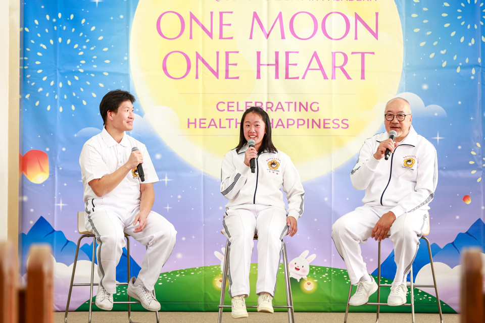 Gastroenterologist Dr. Donald Kwok (right) and Gill Wang (center), a medical student at USC, engage in a conversation with the MC about physical, mental, and spiritual health.Gill Wang, a Johns Hopkins graduate now studying medicine at USC, has practiced Tai Ji Men Qigong with her parents since childhood. She shared that growing up in the loving and peaceful environment of Tai Ji Men has filled her with positive energy. Through meditation and qigong practice, she developed strong positive energy, wisdom, and resilience, helping her manage academic and life pressures with balance and strength.